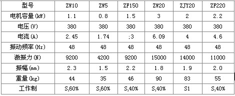 4. 獨特的偏心結(jié)構(gòu),對稱地分布在軸承外側(cè);其中ZW10、ZF150、ZF220、ZW20型可根據(jù)施工情況調(diào)整激振力大小。